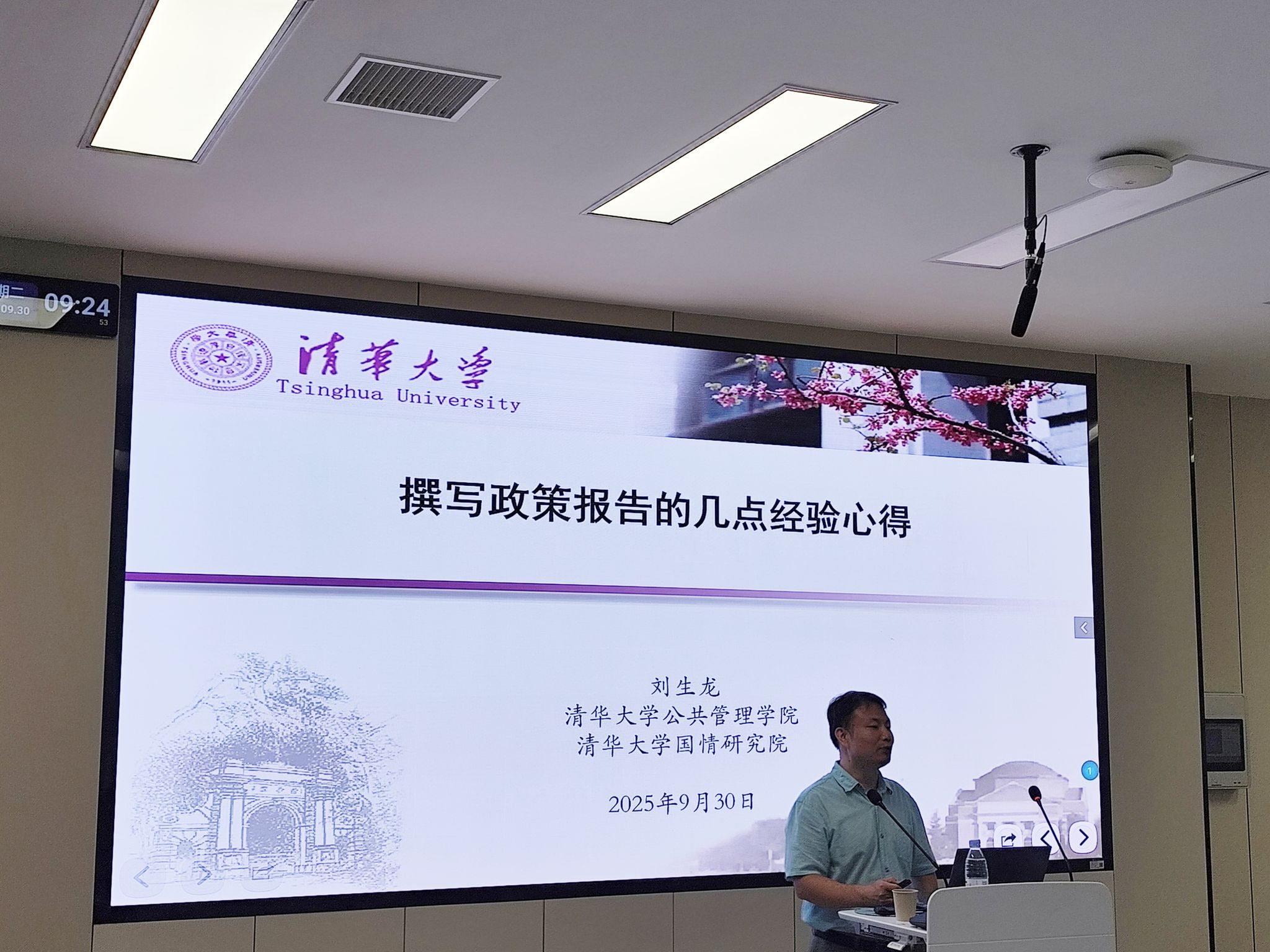 刘生龙副教授以“撰写政策报告的经验分享”为主题,从为什么需要撰写政策报告、如何选题、撰写政策报告的原则和方法三个方面分享了撰写政策报告的经验心得。刘老师指出,撰写政策报告的核心目的是在学术研究与现实世界之间架起一座桥梁,让专业知识成为公共决策的基石,不但有利于学者拓展学术影响力,而且能推动社会进步、服务公共利益、促进决策科学化。刘老师强调,撰写政策报告要培养创设思维,遵循问题导向、证据支撑、可操作性、系统思维、前瞻性和建设性六大原则,切实提出洞察深刻、富有创见且切实可行的“智慧方案”。