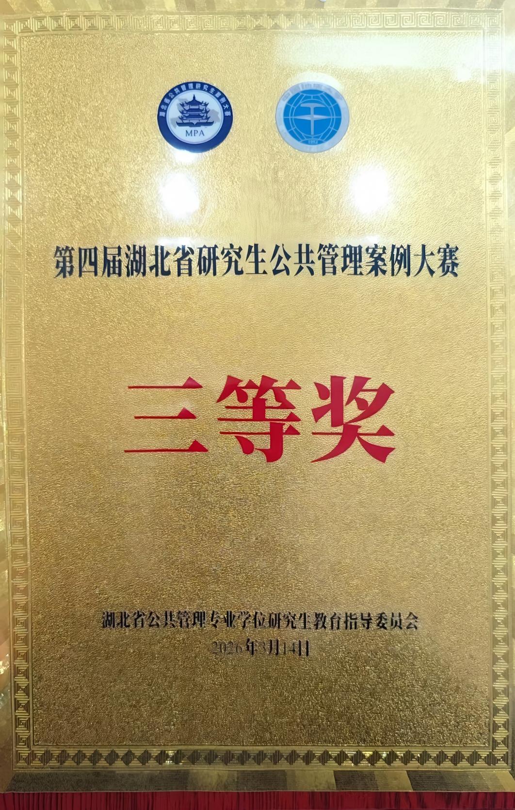 湖北省研究生公共管理案例大赛是省内公共管理领域极具影响力的专业赛事,本届大赛共吸引全省18所院校129支队伍报名,参赛师生超1200人。在中心研究员潘经韬副教授指导下,由24级MPA研究直阳、袁浩田、封弥、吕茹佳、牛淼等五位同学组成的队伍,成功晋级32强,并荣获三等奖。